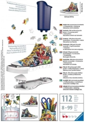 RAVENSBURGER biedt een unieke ervaring met 3D-sneakers die je kunt gebruiken als originele pennenbak voor pennen, kleurpotloden of bijvoorbeeld kwasten. Speciale gebogen of buigzame stukjes die precies op hun plek passen, maken het mogelijk een design-sneaker met motief van Marvel-helden Avengers te bouwen, die er zeer realistisch uitziet. De stukjes zijn gemaakt van stevig plastic en garanderen uitstekende stabiliteit zonder lijm.