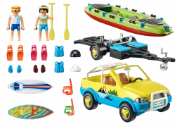 De set PLAYMOBIL FAMILY FUN strandauto met boottrailer brengt de kleurrijke wereld van zomeractiviteiten tot leven – van golven voor surfers tot rustig peddelen in de kano. De robuuste auto met plankhouders en boottrailer biedt talloze speelscenario’s en kan elke trip naar het water moeiteloos aan.