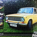 De RETRO-AUTA-editie presenteert een verzamelcollectie puzzels die voertuigen uit de periode 1960 tot 1989 vastleggen. Deze specifieke set toont de auto VAZ 2101 uit 1981.