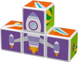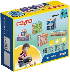 GEOMAG Magicube Printed Transport is een slimme magnetische bouwset die spelen en leren combineert. Vier bedrukte blokken met vervoersmotieven en drie dubbelzijdige kaarten nodigen kinderen uit om auto’s, vliegtuigen, raketten en andere afbeeldingen te bouwen. Dankzij magneten die op elke rand werken is bouwen intuïtief en veilig.