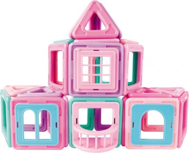 Magformers Mini House is prachtig ontworpen en fantastisch samengesteld, met 42 onderdelen. Het is een uitstekende bouwset voor elke kleine architect en is uitgerust met speciale clip-in accessoires voor het bouwen van huizen – zoals een balkon, ramen en alles wat je nodig hebt om een droomhuis te bouwen in pastelroze en turkoois. Je kunt van alles bouwen, van huisjes en chalets tot vakantiehuizen, compleet met bomen. De set bevat 18 vierkanten, 12 driehoeken, 1 enkelvoudig raam, 1 dubbel raam, 1 gedeeld raam, 1 balkon, 6 baksteen-inlays en 2 bomen. Geschikt voor kinderen vanaf 3 jaar. Aantal onderdelen: 42. De creatieve magnetische bouwset Magformers maakt het mogelijk om een groot aantal driedimensionale objecten te bouwen met behulp van tweedimensionale kunststof veelhoeken. Magformers traint de fijne motoriek, stimuleert creativiteit en leert kinderen kleuren en basisvormen. De afmetingen van de onderdelen en de zorgvuldig gekozen vormen zorgen voor maximale veiligheid van het speelgoed. Het materiaal waarvan de bouwset is gemaakt, voldoet aan de strengste hygiënische en gezondheidscriteria. De onderdelen zijn groot genoeg, kunnen niet worden ingeslikt en zijn praktisch onbreekbaar. MAGFORMERS kan ook zeer goed worden gecombineerd met de bekende magnetische bouwset Geomag.