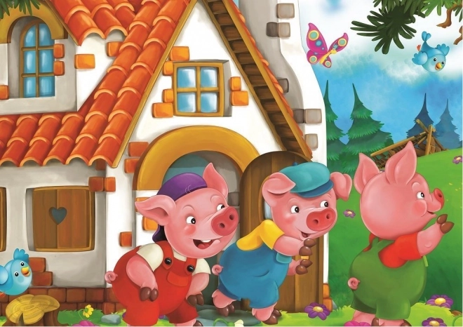 Deze set van het merk ART PUZZLE biedt twee leuke puzzels met het populaire sprookjesmotief De drie biggetjes. Dankzij het verschillende aantal stukjes (24 en 35) kun je eenvoudig overstappen naar een hogere moeilijkheidsgraad terwijl de afbeeldingsgrootte gelijk blijft.