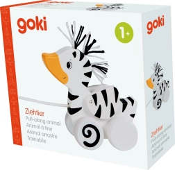 Dit houten trekeendje met zebrapatroon is de ideale speelgoedkeuze voor kleine ontdekkers. Dankzij de robuuste constructie van massief hout en de gladde randen is het veilig en prettig om aan te raken. Bij het trekken wordt het eendje een speelse motivator om te lopen en helpt het de grove motoriek en het evenwichtsgevoel te ontwikkelen.