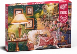 De puzzel "Poetic Teatime" toont een gezellige theekamerhoek ontworpen door de getalenteerde kunstenares Erin Dertner. Tijdens het puzzelen ervaar je de sfeer van een rustige plattelandse omgeving.