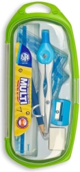 • Inhoud set: metalen passer, liniaal 15 cm, 2× geodriehoek, gradenschaal, potlood, puntenslijper, gum