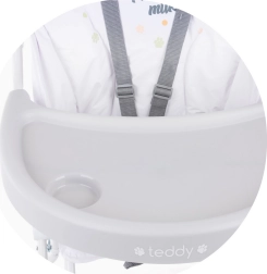 De Chipolino Teddy eetstoel is ontworpen voor kinderen die zelfstandig kunnen zitten en combineert comfort, veiligheid en eenvoudig onderhoud. De brede zitting biedt het nodige comfort, terwijl de 5-punts gordel en het stabiele frame zorgen voor veilig tafelen.