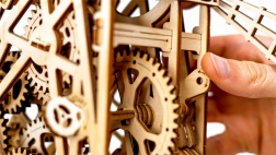 Ondanks de complexiteit is de montage eenvoudig en buitengewoon fascinerend. Voor nauwkeurige en soepele werking raden we aan de assen en tandwielen te verzorgen met was. Deze puzzel is het perfecte cadeau voor liefhebbers van mechanica en de natuurlijke schoonheid.