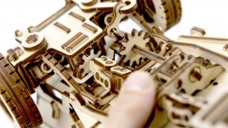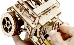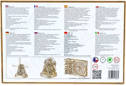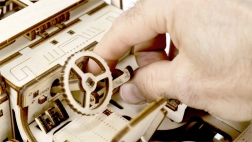 Elk onderdeel van het model, met een afmeting van ongeveer 27,9 x 15,1 x 14,8 cm, is laser-gesneden voor nauwkeurige en soepele montage. Breng tot slot was aan om een soepele werking van de tandwielen en assen te garanderen. Voor de montage zijn een afbreekmes, schaar, schuurpapier en een kaars nodig (uitrusting niet inbegrepen).