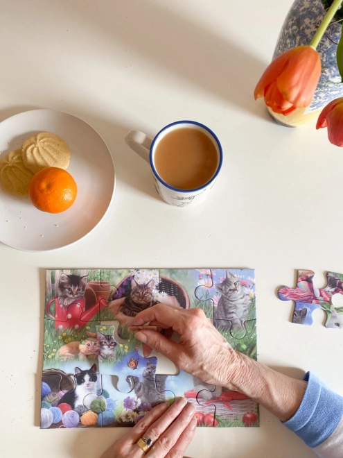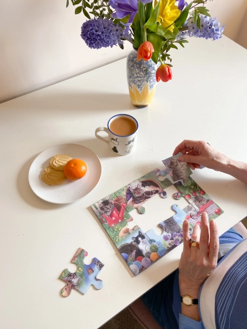 De collectie We leggen samen is ontworpen om mensen met beperkte fijne motoriek of een visuele beperking een leuke activiteit te bieden die ze alleen of met iemand dierbaars kunnen doen. In de verpakking zit een voorbeeld van het te leggen motief. Afmeting van de gelegde puzzel ca. 29 x 21 cm