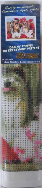 Diamond painting is een geweldige creatieve activiteit die helpt je geest te ontspannen en tegelijk een unieke woondecoratie te maken. Het motief hondjes in rozen zal liefhebbers van dieren en mooie details aanspreken. Dankzij de overzichtelijke legenda en de applicatiepen breng je gekleurde steentjes gemakkelijk aan op het voorgedrukt canvas.