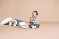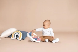 Een zacht stoffen lijfje en een gezicht van hoogwaardige kunststof nodigen uit tot knuffelen, verzorgen en het ontwikkelen van fantasie en fijne motoriek.