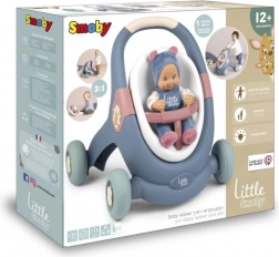 De eerste stapjes worden leuk én veilig dankzij de stabiele 3-in-1 loopwagen van Little Smoby. Dient als duwloopwagen, poppenbuggy en afneembare draagmand in één. Brede wielen en een schakelbare rem geven zekerheid, terwijl de schattige pop van 30 cm de fijne motoriek en fantasiespel stimuleert.
