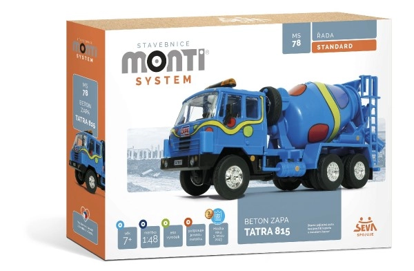 Het legendarische Tsjechische bouwpakket MONTI SYSTEM verrukt zowel kleine als grote bouwers met een realistisch model van de vrachtwagen Tatra 815 in de Zapa beton uitvoering. Onderdelen klik je eenvoudig in elkaar – zonder lijm en zonder verven – en in een mum van tijd heb je een gedetailleerd model klaar waarmee je veel plezier beleeft.