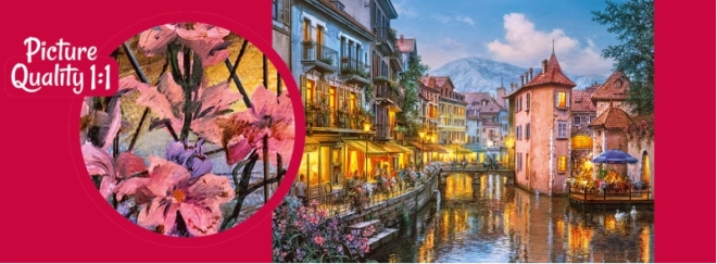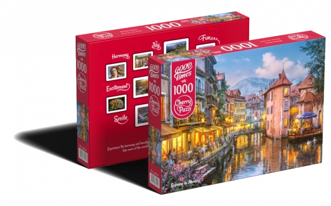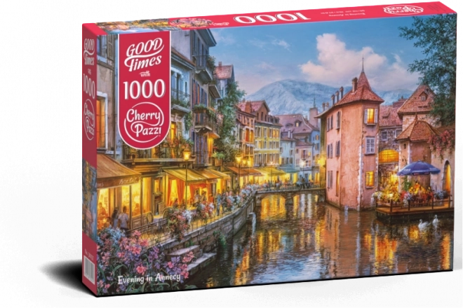 Cherry Pazzi puzzel Avond in Annecy, 1000 stukjes. Formaat na het leggen ca. 70 × 50 cm. Indrukwekkend motief, geweldige ontspannende fun en een cadeau voor puzzelliefhebbers.