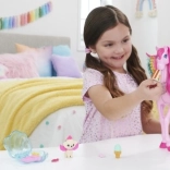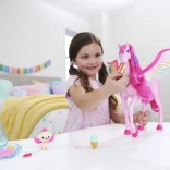 Vlieg op de vleugels van fantasie met de roze pegasus van Barbie! Deze magische pegasus biedt licht- en geluidseffecten, aangevuld met een magische hond en zoete accessoires.