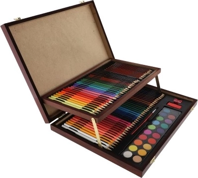 Creatieve kunstset is de perfecte oplossing voor iedereen die houdt van creëren. Dankzij de praktische houten etui zijn alle hulpmiddelen overzichtelijk georganiseerd en altijd klaar voor gebruik.