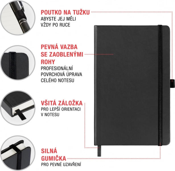 Luxe notitieboek met harde kaft, elastische sluiting en binnenvak voor visitekaartjes. Het gelinieerde schrift kun je gebruiken als dagboek, om diepzinnige gedachten of werknotities in te schrijven. Of je nu in horoscopen gelooft of niet, dit elegante notitieboek is altijd bij je.