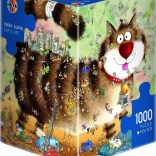 Geniet van leuk puzzelen met de kwalitatieve Heye-puzzel met het motief Kattenleven van cartoonist Marino Degano. De puzzel met 1000 stukjes is verpakt in een originele driehoekige doos en bevat ook een poster als voorbeeld. Na het leggen heeft het beeld een afmeting van ongeveer 70 × 50 cm.