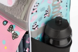 De set bevat ook een klassiek eenlaags etui met twee kleppen en een kwaliteitsrits, en een praktische zak van stevig, afwasbaar materiaal met een voorvak met rits. De hele set is versierd met het populaire pandamotief en is voorzien van reflecterende elementen voor betere zichtbaarheid.