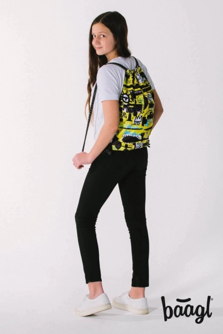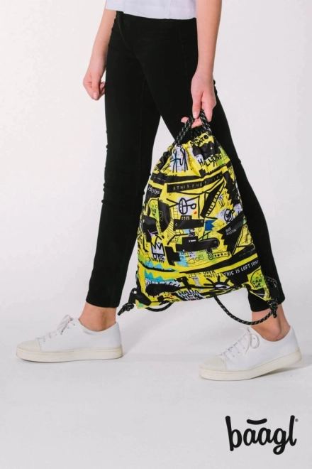 Praktische en lichte zak/gymtas in een origineel streetart-design. Het duurzame BAAGL-materiaal veeg je gemakkelijk schoon, dus ideaal voor school, training en de stad. Dankzij de koordsluiting sluit je de inhoud snel en draag je die veilig mee.