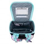 De tas beschikt over een nieuw klepmechanisme voor het openen, waardoor je direct vanaf de schoolbank gemakkelijk bij je spullen kunt. Binnenin vind je een transparant vak met rooster/lesrooster, een interne organizer met elastiek en zijvakken van stevig gaas, geschikt voor een drinkfles.