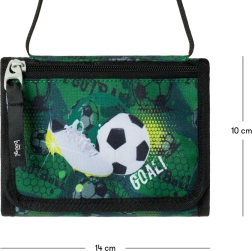 Deze BAAGL nekportemonnee met voetbaldesign is een uitstekende keuze voor het veilig opbergen van zakgeld, kleine voorwerpen en documenten. Dankzij het duurzame materiaal en de betrouwbare klittenbandsluiting blijft de inhoud op zijn plek, zelfs bij dagelijks gebruik.