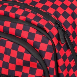 Stijlvolle BAAGL Skate TERIBEAR schoolsset in rood‑zwart geruit design omvat een ruime rugzak, een praktische etui en een duurzame gymsack. De rugzak biedt 3 vakken met organizer en een vak voor een 15"-laptop, heeft ergonomisch gevormde rugpadding, volledig verstelbare banden en riemen voor een skateboard. De set wordt aangevuld met een licht gewicht, reflecterende elementen en hoogwaardige waterbestendige materialen.