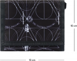 Stijlvolle Harry Potter-portemonnee met het motief van de Relieken van de Dood, ideaal voor fans van de serie. Gemaakt van duurzaam textielmateriaal met een praktische klittenbandsluiting.