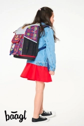 Het nieuwe klapsysteem maakt snelle toegang tot schoolspullen mogelijk, direct vanaf de schoolbank. Binnenin vind je een organizer voor gelijkmatige gewichtsverdeling, een elastiek voor fixatie en een transparant vak voor het lesrooster.