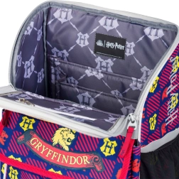 De set wordt aangevuld met een eenlaagse etui met twee flapdelen (zonder inhoud), een gymsack voor gym/binnenschoenen met voorvak met rits en koordsluiting om op de rug te dragen, mappen voor schoolscriften met binnenflap en elastiek, en een nekportemonnee met klittenbandsluiting en muntvakje. Alles in het Gryffindor-thema voor een stijlvolle schoolstart.
