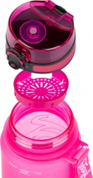 Ontdek een praktische drinkfles van gecertificeerd tritan die geen geuren opneemt en vrij is van schadelijke stoffen. Dankzij het vergrendelbare deksel blijft je drankje veilig binnen, of je nu op school, op kantoor of aan het sporten bent. Het geïntegreerde zeefje maakt het eenvoudig om verfrissend fruitwater of thee te bereiden – het materiaal is zelfs geschikt voor warme dranken.