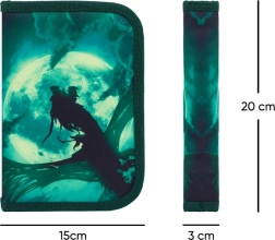 Zoek je een duurzame en overzichtelijke etui voor school en vrije tijd? Deze textielen BAAGL-etui met een indrukwekkend drakenmotief op een turquoise maan combineert functionaliteit met een origineel design. De éénlaagse uitvoering met twee kleppen maakt het organiseren van potloden, pennen, gummen en linialen eenvoudig.