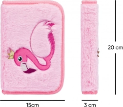 Praktische en stijlvolle schooletui met flamingomotief, opvallend door het zachte oppervlak en de doordachte indeling. Het eenlaagse ontwerp met twee kleppen maakt overzichtelijke opslag van schrijfwaren, liniaal en kleine schoolspullen mogelijk. Duurzame rits zorgt voor betrouwbare sluiting en eenvoudig openen.