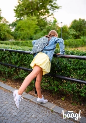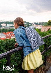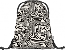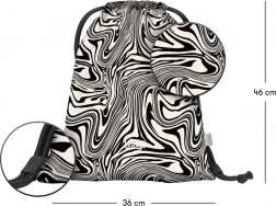 Deze praktische zak is gemaakt van stevig wasbaar materiaal en het elegante zwart-witte psychedelische design trekt ieders aandacht. De sluiting gebeurt met behulp van sterke koorden die ook dienen als comfortabele schouderbanden voor het dragen op de rug.