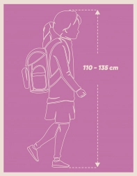 De rugzak is ontworpen met oog op de gezondheid van het kind. Ergonomisch gevormde rug en volledig verstelbare riemen zorgen voor comfortabel dragen.