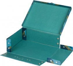 • Opvouwbare koffer van stevig gelamineerd karton met metalen hoekbescherming.