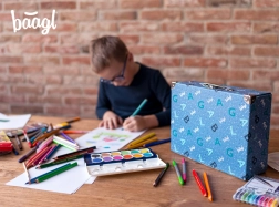 Houd orde met stijl. De opvouwbare BAAGL schoolkoffer is gemaakt van stevig gelamineerd papier dat bestand is tegen dagelijks gebruik. Metalen hoeken beschermen de randen, de metalen handgreep vergemakkelijkt het dragen en de klassieke gesp zorgt voor een betrouwbare sluiting van de inhoud.
