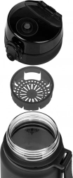 Stijlvolle tritan drinkfles met een inhoud van 350 ml, ideaal voor school, uitstapjes en sport. Voorzien van een vergrendelbare dop tegen lekken, een handig polsriempje en een zeefje voor smaakdrankjes. Gemaakt van hoogwaardige BPA-vrije tritan zonder geur, geschikt ook voor hete dranken.