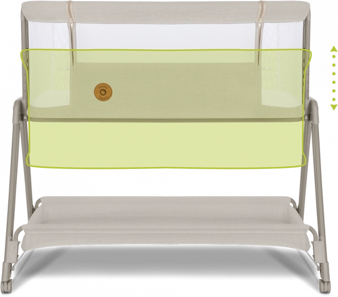 Ademende gaaswanden bevorderen luchtcirculatie en visueel contact, de hoes verwijder je eenvoudig om te wassen voor maximale hygiëne. Met 7 hoogte-instellingen stem je het bedje moeiteloos af op de hoogte van je bed; bij verkoudheid of reflux kun je de matras in een lichte helling zetten voor extra comfort.