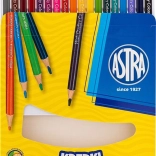 Kwalitatieve driehoekige ASTRA kleurpotloden in een set van 18 kleuren, ideaal voor kinderen en volwassenen. Ze bieden intense en zuivere kleuren, zijn zacht om mee te tekenen, en stoffen niet en vegen niet uit. De ergonomische driehoekige vorm ondersteunt een correcte greep voor zowel rechts- als linkshandigen en in de verpakking zit een praktische puntenslijper.