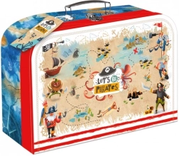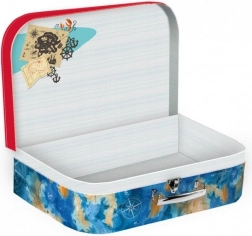 Kwalitatief kinder-koffertje met piratenmotief, ideaal voor schoolspullen. Gemaakt van verhard karton en beschermd met laminering voor een langere levensduur.
