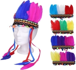 Deze Indiaanse hoofdband met kleurrijke veren geeft uw kostuum een authentieke look. Het is ontworpen om perfect te passen bij de thematische evenementen zoals westernfeesten, carnavals of zomerkampen.