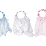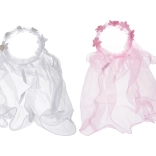 Kies uit verschillende kleuren (wit, roze, blauw) en stem de outfit af op je stemming. De sluier van ca. 55 cm valt subtiel over de rug en zorgt voor een elegant, vloeiend effect op foto’s en tijdens beweging.