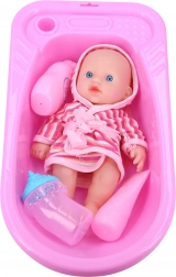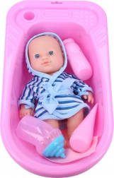 Deze geweldige badset met een schattige pop is ideaal voor kinderen die van het verzorgen van hun speelgoed houden. De set bevat alles wat nodig is voor het baden van de pop: