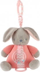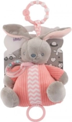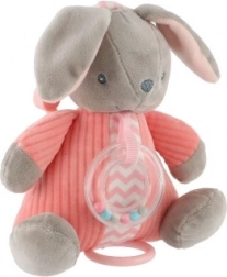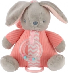 Pluche konijntje met opwindbaar speelwerk en rammelaar, roze (18 × 20 cm)