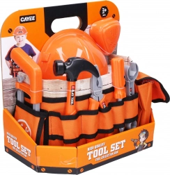 Praktische kinderset voor kleine reparateurs met alles wat nodig is voor veilig spelen en de eerste “doe-het-zelf” pogingen. Inclusief een textiele riem voor het comfortabel dragen van gereedschap, een helm en een rijke uitrusting: mondkapje, zaagje, hamertje, combinatietang, pijptang, schroevendraaier, sleutel, 2 latjes, 3 schroeven en 3 moeren.