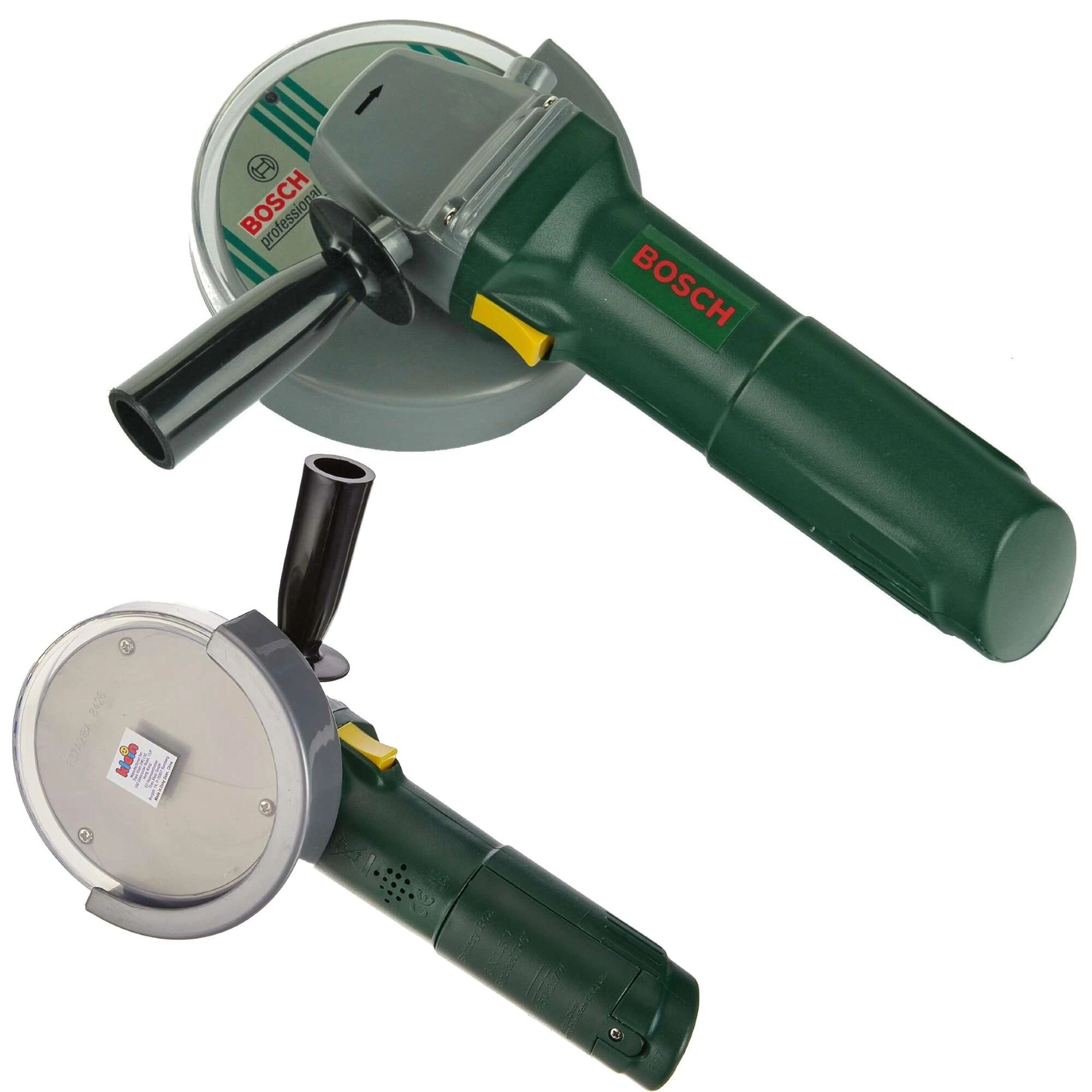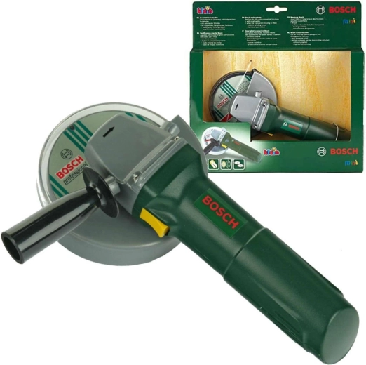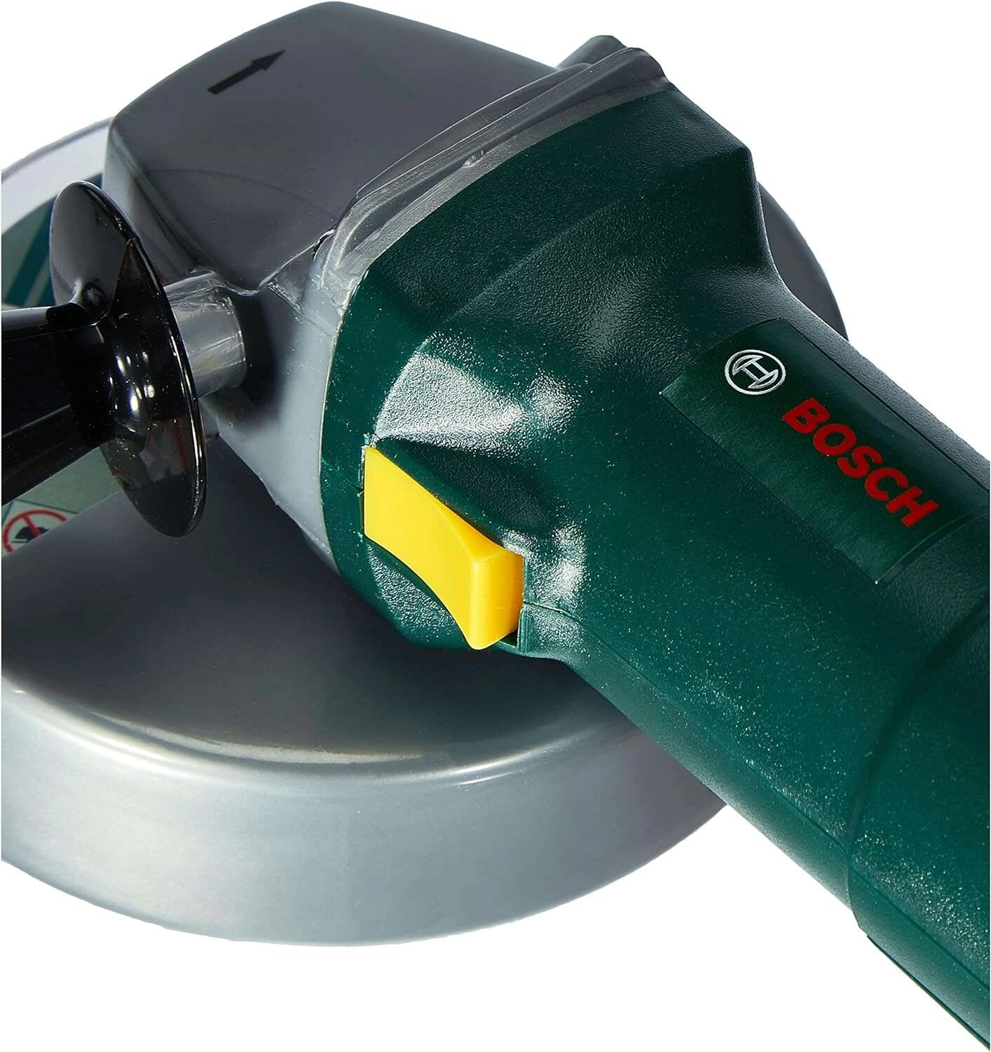 De slijper is stevig en met oog voor detail gemaakt, met een donkergroene behuizing, grijze accenten en een rood BOSCH-logo. Voor extra speelplezier is hij uitgerust met een roterende schijf, lichteffect dat vonken imiteert en een geluidseffect van een draaiende slijper. De ideale speelgoedset voor kinderen die graag volwassenen nadoen en veilig willen oefenen met gereedschap.