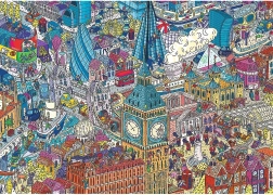TREFL UFT (Unlimited Fit Technology) brengt een revolutie in de puzzelwereld. De speciale stans-technologie maakt het koppelen van meerdere motieven uit dezelfde serie mogelijk, zodat je zelf de grootte en vorm van de uiteindelijke collage bepaalt. Het gedetailleerde motief “Eye-Spy Time Travel: Londen” zal elke liefhebber van Groot-Brittannië en minutieus puzzelen bekoren.