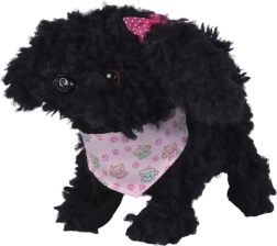 Dankzij de compacte afmetingen is het hondje ideaal om te knuffelen en voor dagelijks spel. De stijlvolle roze sjaal en het schattige strikje geven het speelgoed een charmante look die meteen in het oog springt.