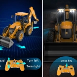 Realistische bouw-RC loader/bulldozer op schaal 1:20, geïnspireerd op JCB-machines, voor veel plezier binnen en buiten. Besturing op 2,4 GHz zorgt voor soepel rijden vooruit/achteruit en sturen links/rechts. Op afstand heft en laat de voorste blad neer, heeft cabineverlichting en realistische motorgeluiden. Rubber loopvlak op de wielen verhoogt de grip en stabiliteit op diverse ondergronden.